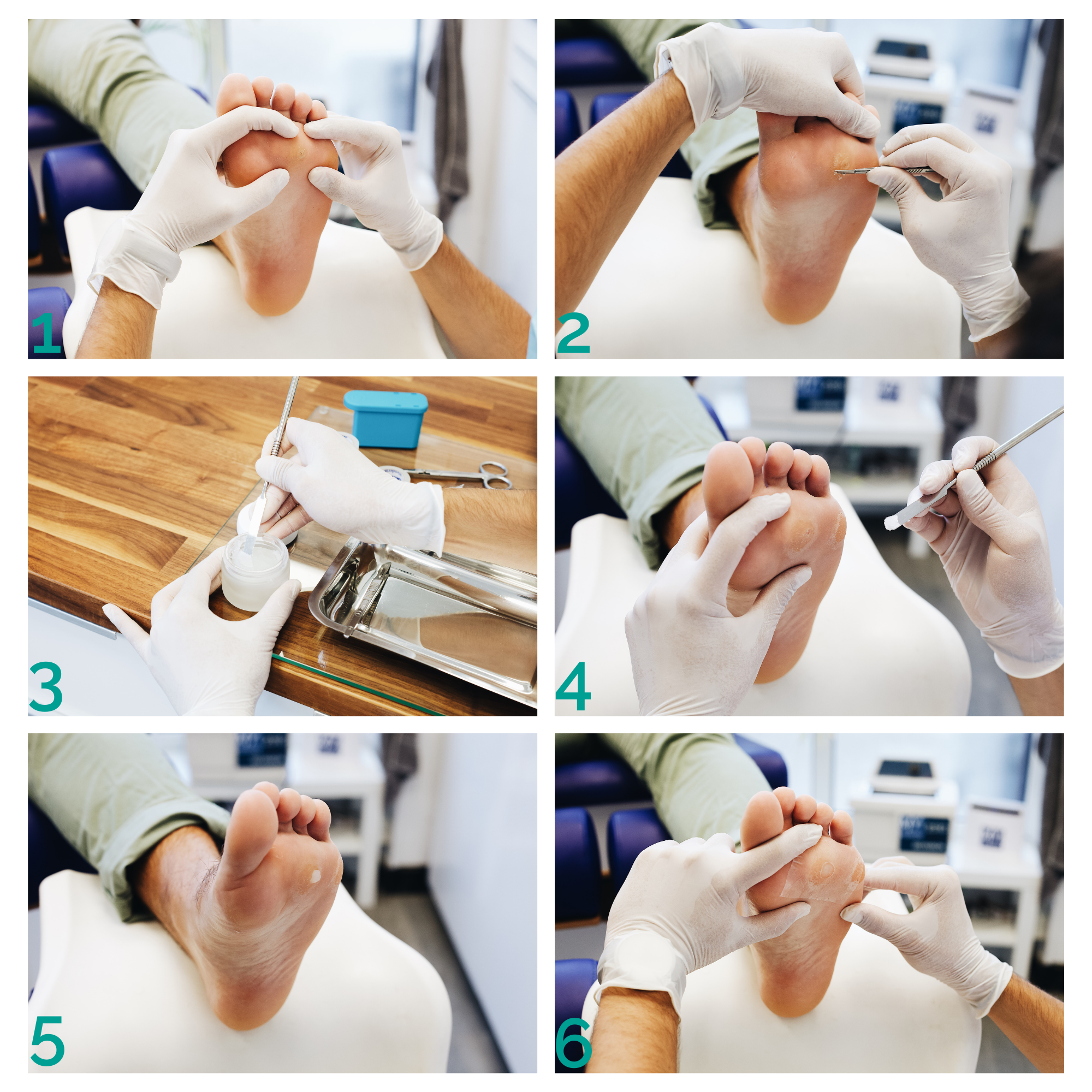 Protocol to be carried out during each consultation. Plan a consultation every 2-3 days. On average, it will take 2 to 4 consultations to completely eliminate hyperkeratosis.