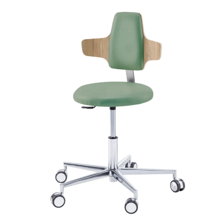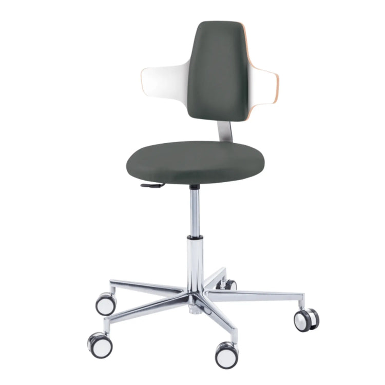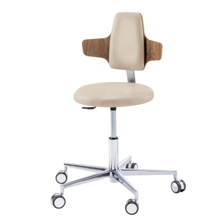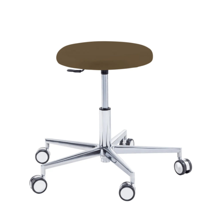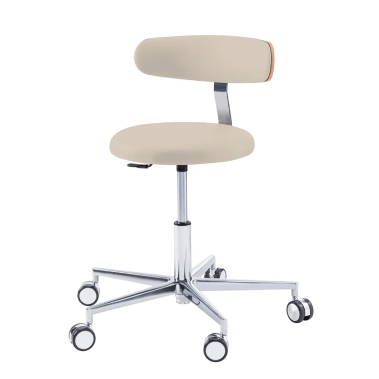 Nada más básico para practicar tu cuidado con comodidad. Con su forma redonda, el taburete ROUND te ofrecerá una libertad de movimiento incomparable. Con su acolchado equilibrado en toda la superficie del asiento, este taburete con base de aluminio y ruedas autofrenantes para pisos duros será su mejor activo para brindar atención a sus pacientes. Disponible en dos tamaños: corto (45 - 57 cm) y largo (53 - 73 cm).