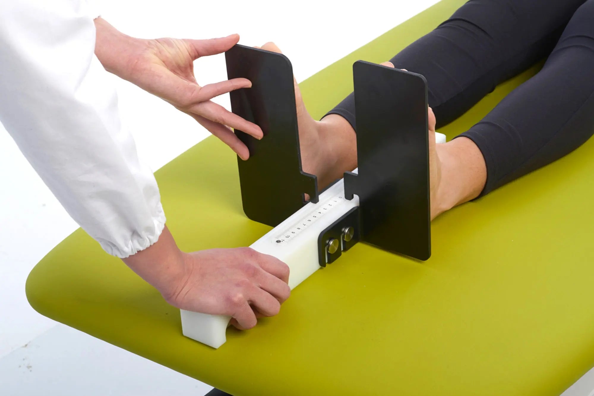 La structure solide de l'instrument, la précision de la plate-forme mobile et la réglette millimétrée placée sur la partie supérieure de la barre permettent de mesurer de manière fiable et rapide les différences de longueur des membres inférieurs avec une marge d'erreur de quelques millimètres.