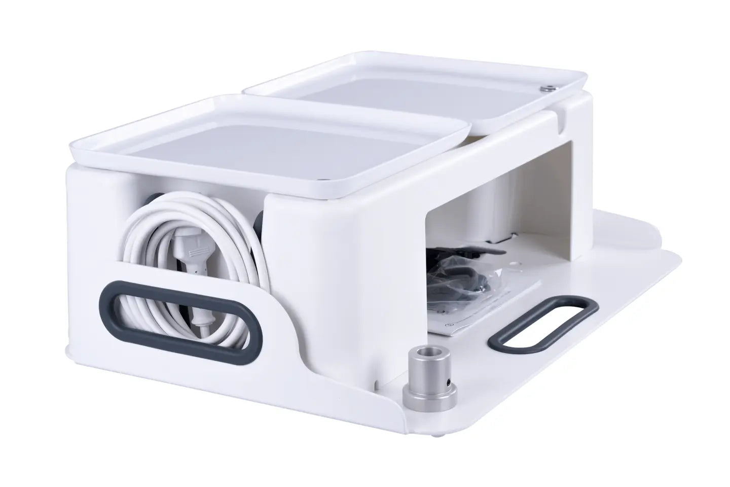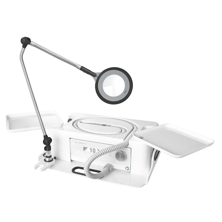 - Offre de la place pour la lampe loupe mobile PODOLOG CIRCLE S ainsi que pour une rallonge et dispose de rangements intégrés en plastique ABS résistant aux chocs, hygiénique et facile à nettoyer. Grâce à ses dimensions compactes, elle est facile à transporter partout.
