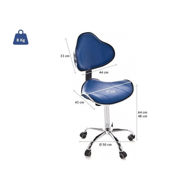 Tabouret ergonomique avec système d'élévation à gaz et finition chromée.